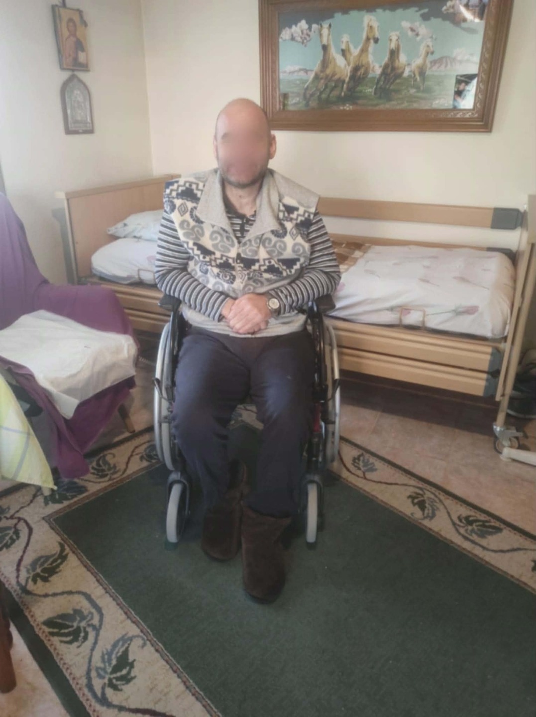Για τα κινητικά του προβλήματα απαιτούνται φυσικοθεραπεία και εργοθεραπεία, αλλά η μητέρα του (επίσης έχει προβλήματα υγείας), δεν μπορεί να τον πάει με το αναπηρικό καροτσάκι καθώς μένουν στον α΄όροφο και δεν υπάρχει ασανσέρ-πλατφόρμα