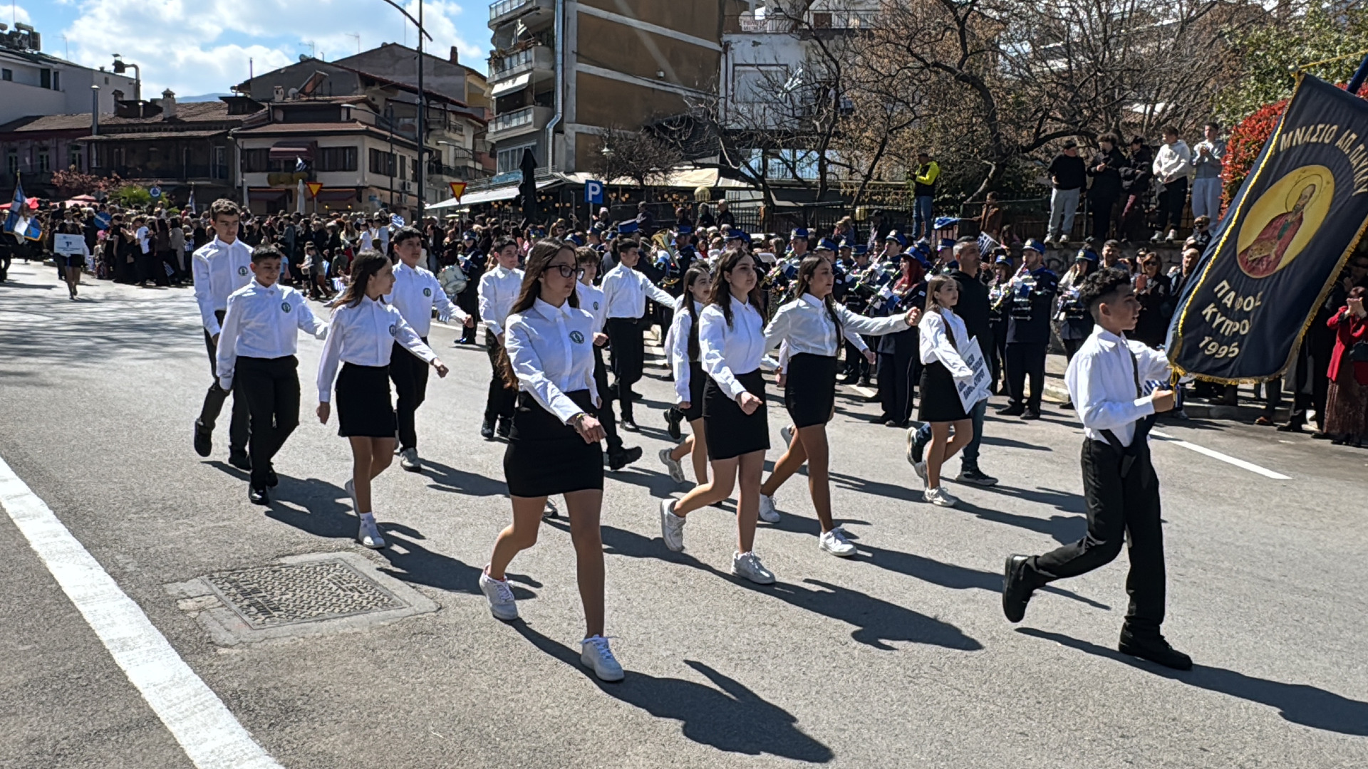 Παρήλασαν και καταχειροκροτήθηκαν υπό τους ήχους της Φιλαρμονικής Εταιρίας, τα πολιτιστικά μας σωματεία, οι μαθητές των σχολείων, το Ειδικό Σχολείο Νάουσας, το Γυμνάσιο Πάφου που μας τίμησε με την παρουσία του, η Σχολή Αστυφυλάκων και η Β΄Μοίρα Καταδρομών που "πέρασαν" με άψογο βηματισμό!
