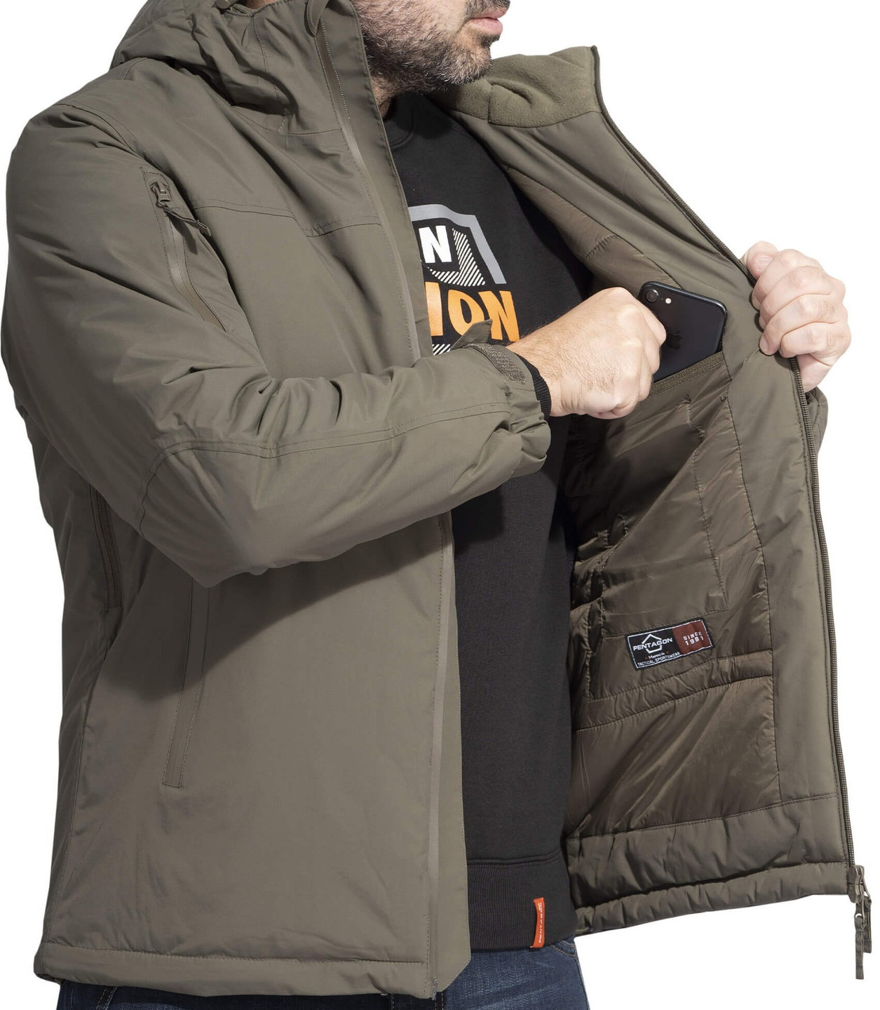 Ύφασμα 100% Nylon TaslonFilm Lamination WP 5.000mm MPV 5000Gsm ( American Standard )DWR επίστρωση επιπέδου 4 Θερμοκολλημένες ραφές Σύστημα εξαερισμού κάτω από το βραχίονα με εντομοαπωθητικό πλέγμα Τσέπες και λαιμόκοψη με επένδυση από λεπτό fleece Διπλές τσέπες στο στήθος για έγγραφα Εσωτερική τσέπη εγγράφων Ρυθμιζόμενη κουκούλα 3 σημείων Ρυθμιστής ιμάντα καρπού Αδιάβροχα φερμουάρ RF ID Τσέπη καρπού Ενίσχυση : 200Gsm σώμα | 160Gsm μανίκια