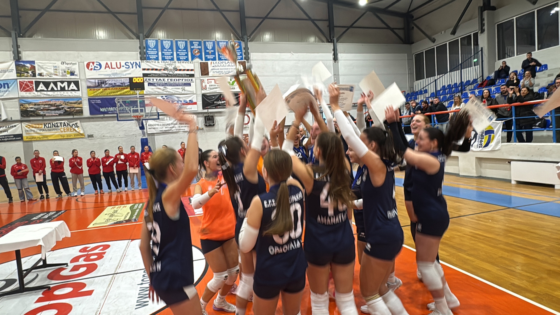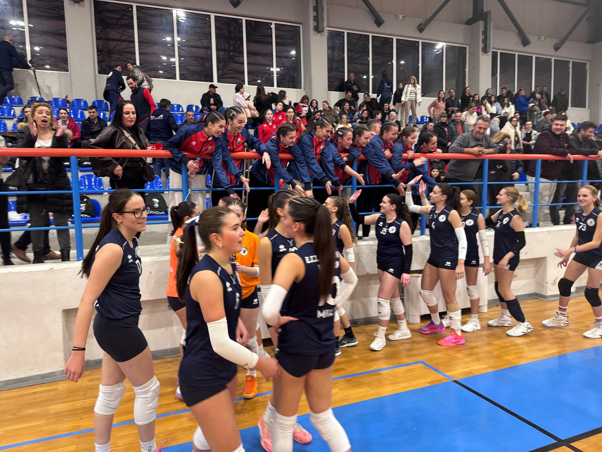 Σαν σίφουνας πέρασαν οι νεανίδες μας που δεν κατάφεραν να τις σταματήσουν ούτε οι αντίπαλες από την τοπική ομάδα Νίκη οι οποίες υποτάχθηκαν με 1-3 σετ σε ενα συγκλονιστικό παιχνίδι, με βόλλεϋ υψηλού επιπέδου από όλες τις ομάδες.