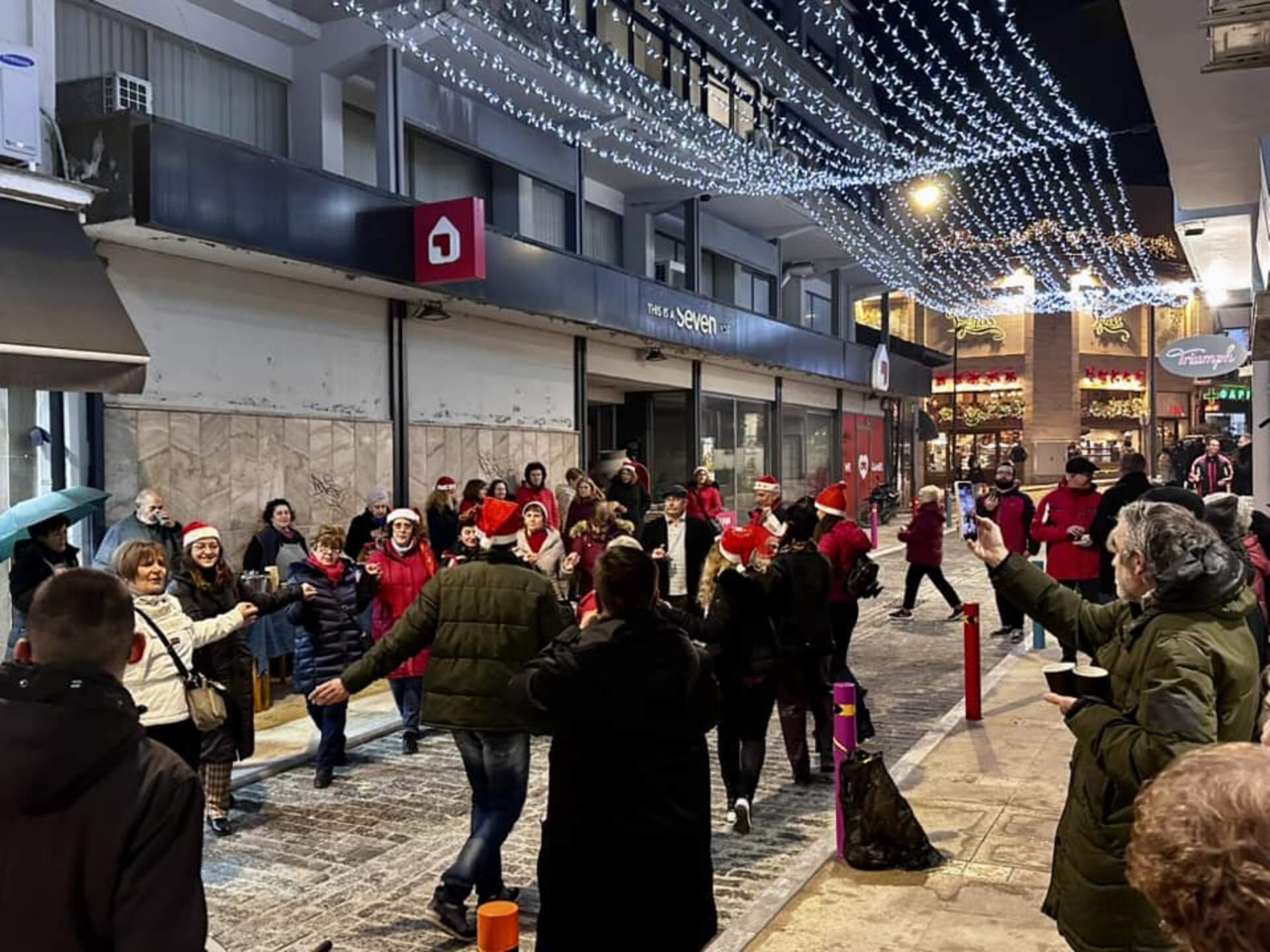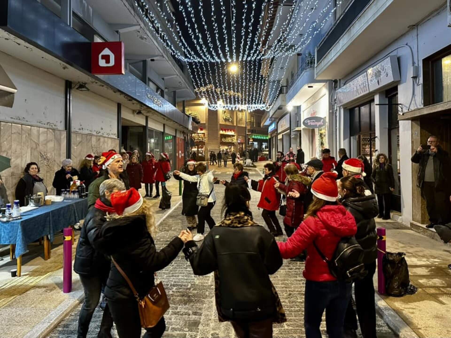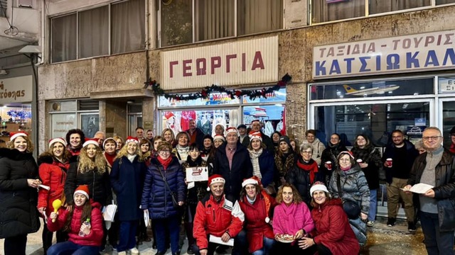 Μία ακόμα εορταστική νότα χάρισαν στην αγορά της Νάουσας τα χορευτικά τμήματα της Ευξείνου Λέσχης Ποντίων Νάουσας, την Παρασκευή 20 Δεκεμβρίου, ψάλλοντας τα ποντιακά και τα τοπικά κάλαντα των Χριστουγέννων. Το όμορφο αυτό απόγευμα έκλεισε με ένα γλέντι γεμάτο με χορό, ζεστή σούπα και κρασί, στην οδό Δημητρίου Βλάχου.