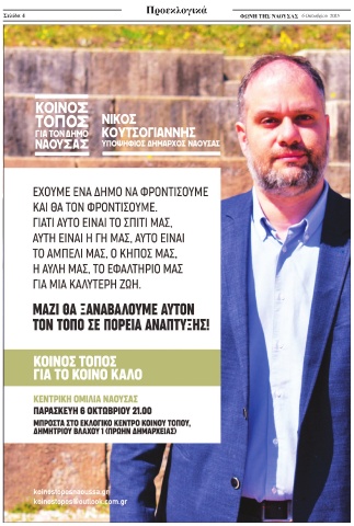 Προεκλογικά Σελίδα 4 ΦΩΝΗ ΤΗΣ ΝΑΟΥΣΑΣ 6 Οκτωβρίου 2023