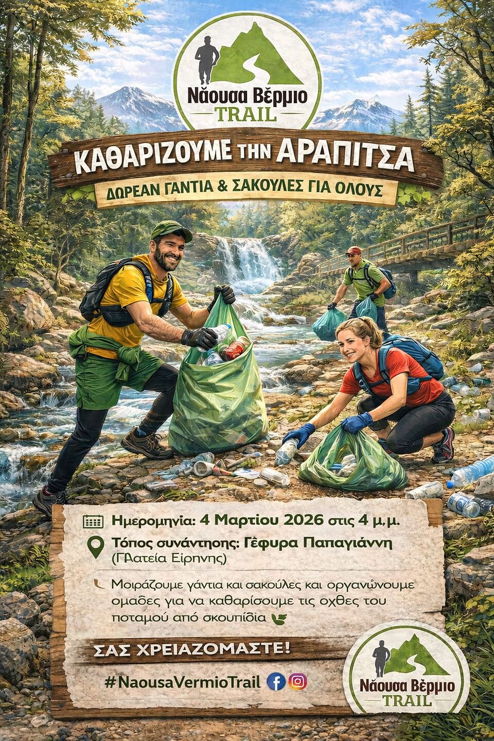 Σύλλογος Νάουσα Βέρμιο Trail: Ελάτε να καθαρίσουμε όλοι μαζί την Αράπιτσα και να δείξουμε έμπρακτα την αγάπη μας για την πόλη